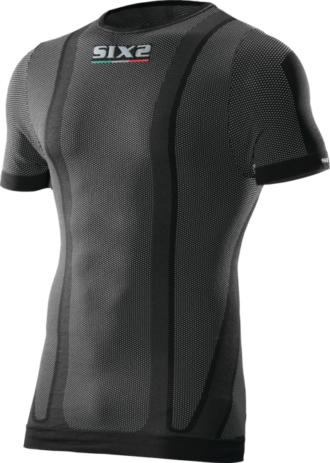 SIXS Carbon Underwear short-sleeve round neck jersey, a multi-sport product ideal in all conditions. Unlike the sleeveless model, the sleeve hugs the upper part of the arm (armpit) which is subject to copious perspiration and keeps the skin dry. The lightest and most breathable polypropylene fiber on the market combined with a real carbon yarn that provides heat transmission and antistatic properties that protect the body from the electric charge caused by rubbing multiple synthetic fabrics against each other (condition typical of sports clothing) Antistatic system : The carbon yarn isolates the static electricity caused by the rubbing of fabrics Seamless technology : Seamless garment on the torso to provide absolute comfort Materials : Carbon Underwear Breathability and thermoregulation without compromise. Perfect for all seasons of the year. Antistatic fabric 77% Polypropylene, 15% Polyamide, 5% Elastomer, 3% Carbon Fiber
